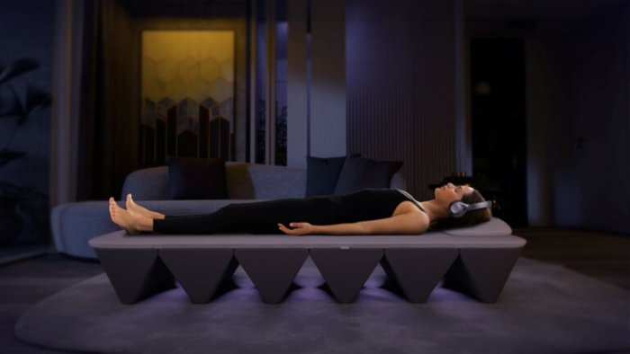 The details of the Opus SoundBed amplifier are not clear other than an advertised 100W. Images on their website suggest that the amplifier may be installed inside the base of the bed, and it may connect wirelessly in addition to a cable connection. It is also unclear whether a headphone amplifier is incorporated or included. The advantage of this design may be the concealed amplifier for a neater finish and for hiding the messy cables. Wireless connectivity is also a nice feature, though be aware that audio quality will be diminished with a wireless connection.
